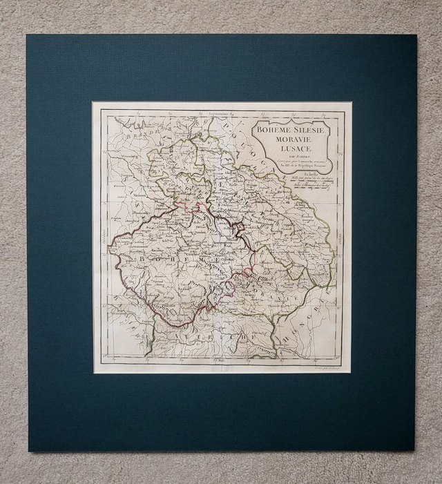 The map is presented in a dark green mount that measures approximately 37 x 40 cm. It will be mailed in a cardboard-backed envelope.