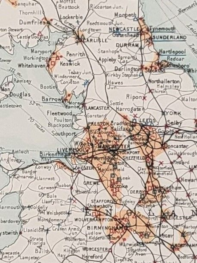 This is an authentic antique map and was published by Bartholomew in 1904. It shows the location of manufacturing industries across the British Isles in the early years of the 20th Century.
