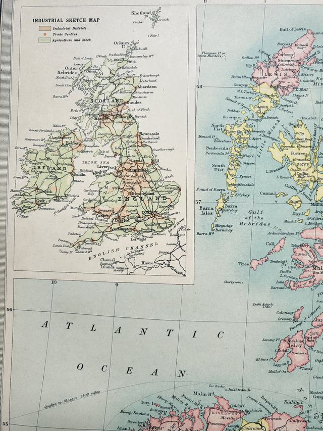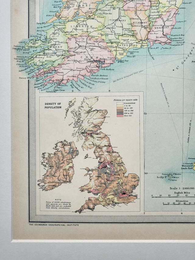 This large, colourful and detailed map of the British Isles was published in 1922 by The Times. It shows the administrative counties of Great Britain and Ireland, and it incorporates two smaller maps in the corners (population density and industrial areas.)