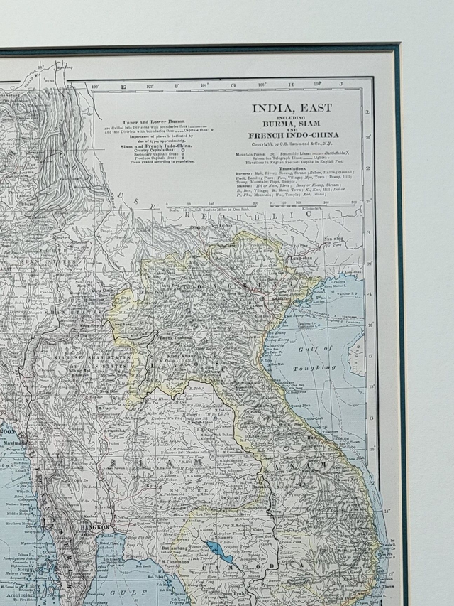 It features the names of SE Asian countries at that time: Siam (Thailand), French Indo-China (Laos, Cambodia, Vietnam), etc.