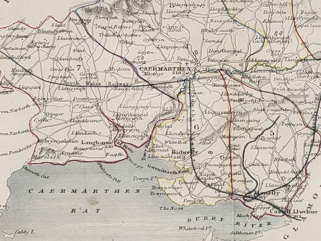 This is an authentic antique map and was published by Archer in circa. 1875. It is hand-coloured and shows the political divisions ('hundreds') and railways of this South Wales county.