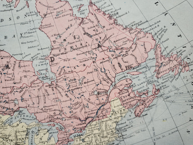 This authentic antique map of Canada was published by W & AK Johnston in circa 1907. It is presented in a mount measuring 20 x 16 inches which will fit neatly into a standard-sized frame.