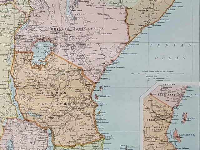 This authentic antique map was published by Bartholomew in circa. 1900.