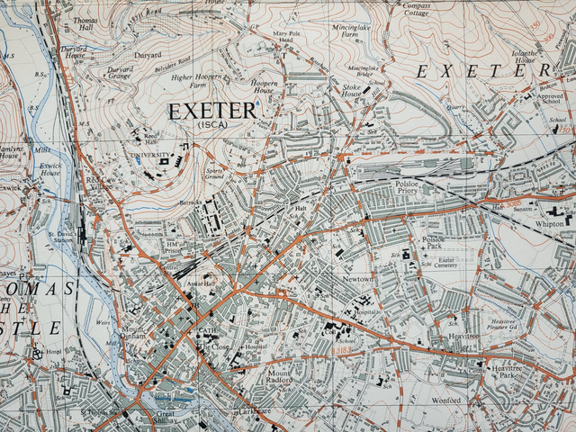 This vintage map of Exeter was published by the Ordnance Survey in 1963. With a scale of two-and-a-half-inches to the mile, the map is very detailed. It is in good condition and, presented in a standard-sized mount of 20 x 16 inches, it is ready to frame.