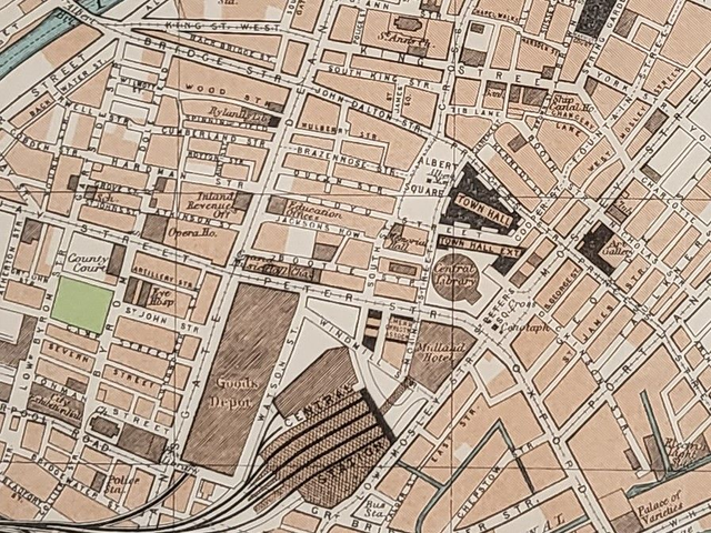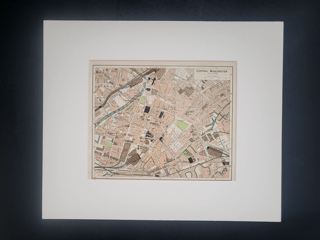 This is an authentic vintage map and was published by Muirhead in 1950. It shows the centre of Manchester.