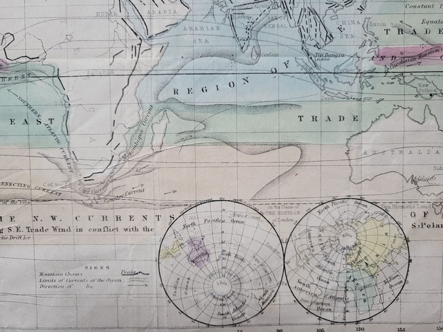 Unmounted, authentic antique map of the world by Oliver and Boyd.