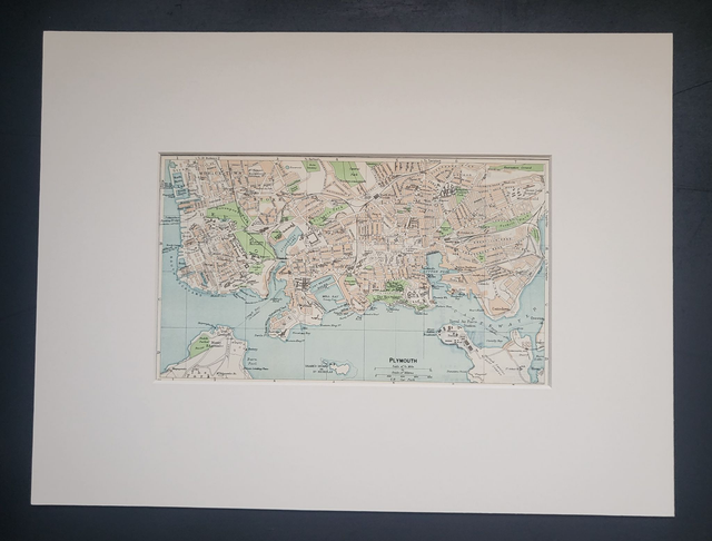 This is an authentic vintage map and was published by Muirhead in 1950. It shows the centre of Plymouth, and Devonport.
