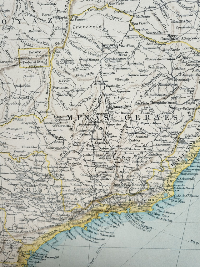 This authentic antique map of eastern South America was published by Newnes-Bartholomew in 1923. It covers most of Brazil, the Guianas, Paraguay and part of Bolivia.