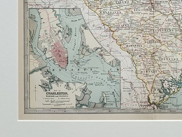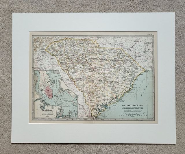 This authentic antique map of South Carolina was published by Encyclopaedia Britannica in 1903. It includes a smaller map of Charleston.