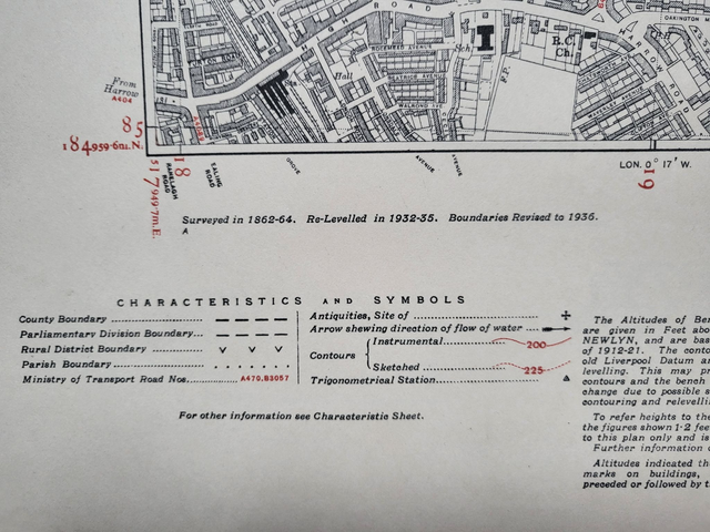This is an authentic vintage map and was published in 1938 by Ordnance Survey.
